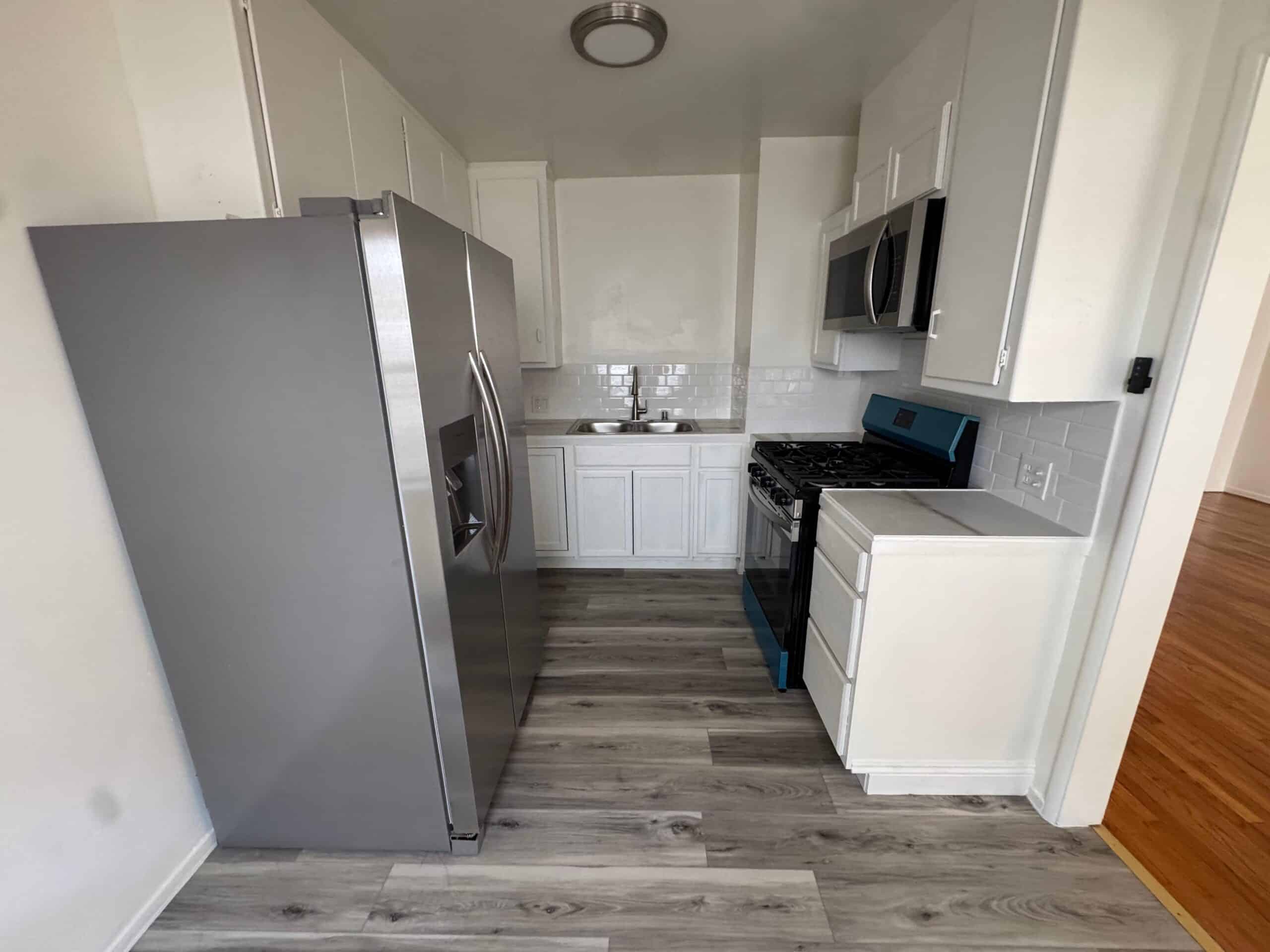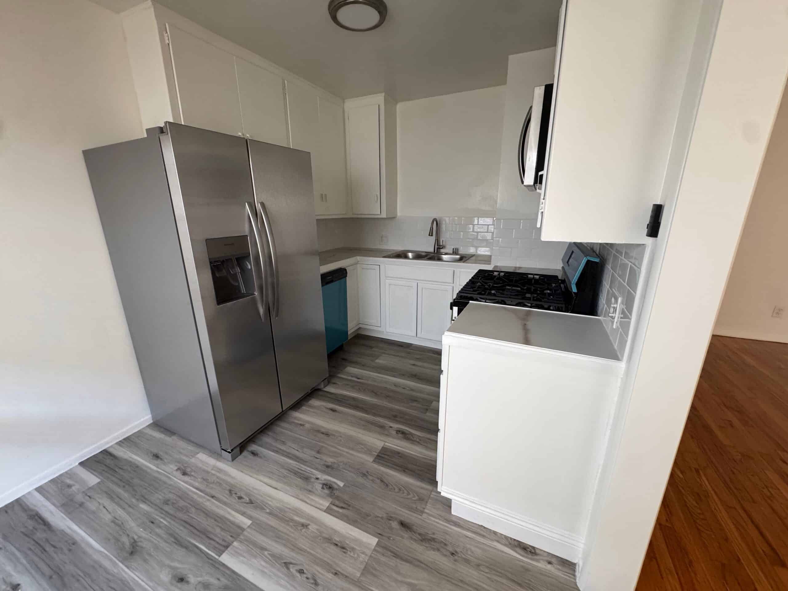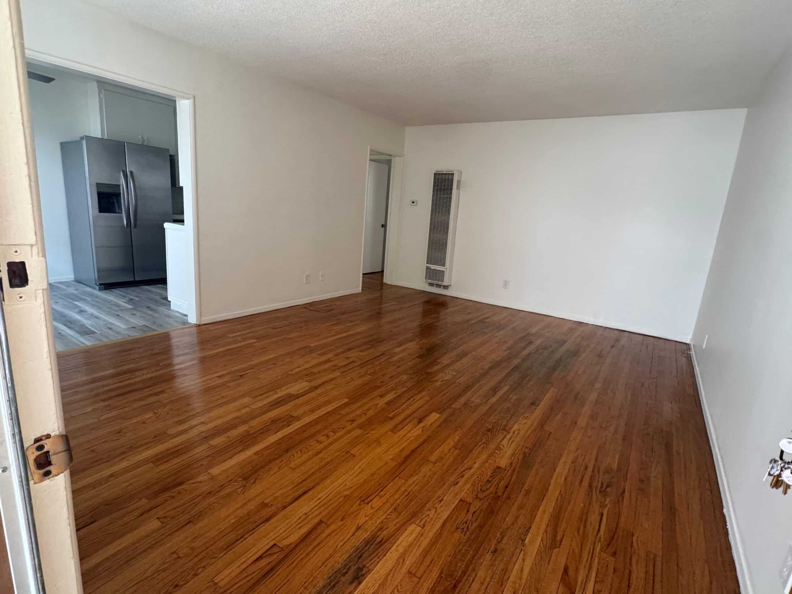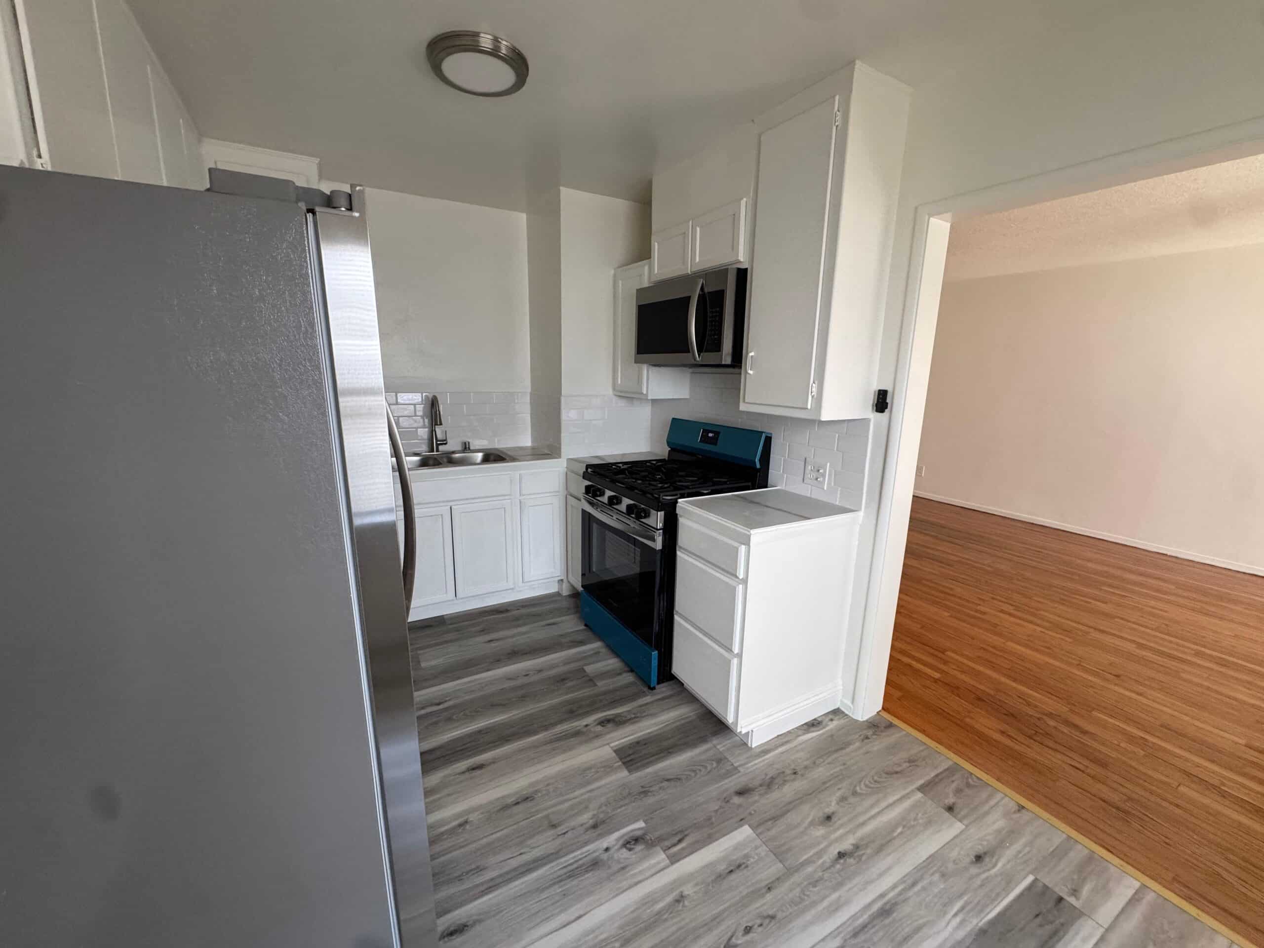 Welcome to 1037 N Curson Avenue #1, a beautifully updated one-bedroom, one-bath apartment offering approximately 710 square feet of inviting living space. The apartment features a spacious living room with rich hardwood floors and large windows that fill the interior with natural light. The kitchen has been tastefully modernized with stainless steel appliances, sleek countertops, and ample cabinetry, creating both style and functionality.